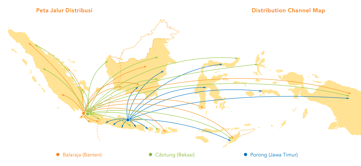 The Company operates 3 Distribution Centers, strategically located at Balaraja - Banten, Cibitung - Greater Jakarta and Porong - East Java, encompassing 66,755 m² of distribution space and 76,952 pallet positions. Nearly 54% of the Company’s store sales come from merchandise that flows through our Distribution Centers.